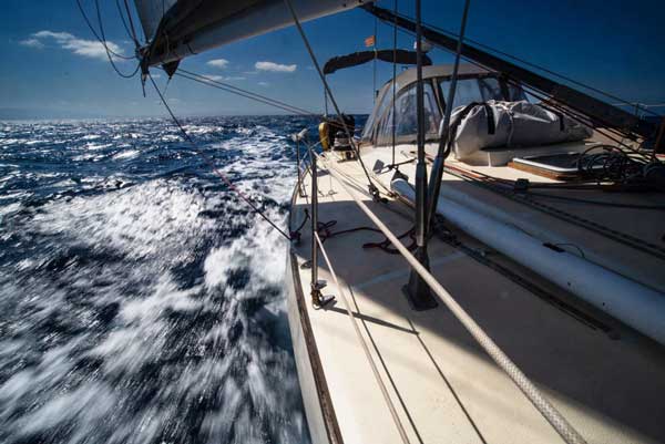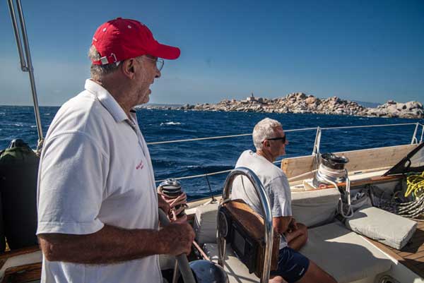 Així, doncs, després d’un sopar de comiat a la vila vella de Castelsardo i fet el ple de gasoil, aigua i menjar per a bastants dies, vam salpar de bon matí cap a “les boques”. A mesura que ens apropàvem, trabujada a trabujada, al gran embut natural entre les illes de Còrsega i Sardenya, el vent anà refrescant i la mar creixent. Cap al migdia, amb una forta maregassa, un ris a la major i el gènova lleugerament enrotllat ens col·locàrem a sotavent de les illes Lavezzi. A partir d’aquell moment, i fins a la matinada, navegàrem sota les altes muntanyes de l’illa. Solcàvem rabents la mar, plana com un plat, lleugerament escorats a estribord i amb el vent de mestral pel través que ens permetia navegar a més de nou nusos de velocitat… una pura delícia.